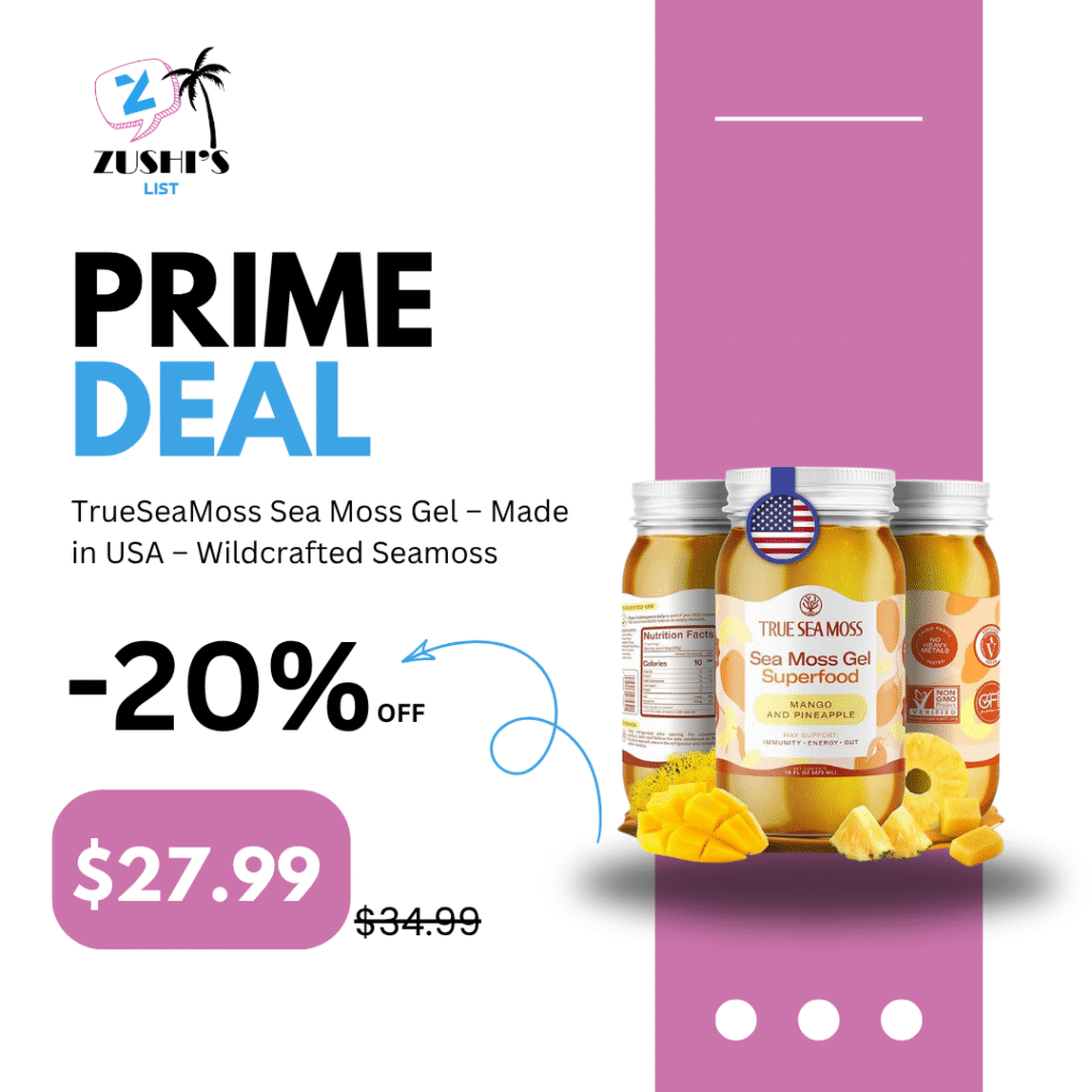 TrueSeaMoss Sea Moss Gel – Made in USA – Wildcrafted Seamoss, Fresh Fruits & Sea Vegetables – Mango/Pineapple, Pack of 1 (Labels may Vary)