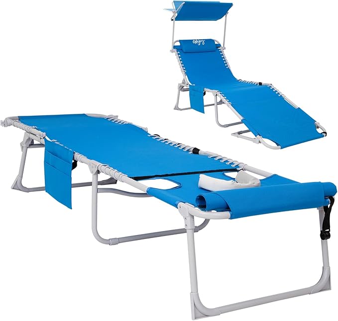 #WEJOY 3 in 1 Tanning Chair with Face Hole & Canopy, 300 lbs Heavy Duty 5 Positions Folding Face Down Lounge Chairs Outdoor with Pillow & Storage Bag Portable for Pool Beach Lawn Camping (Blue)