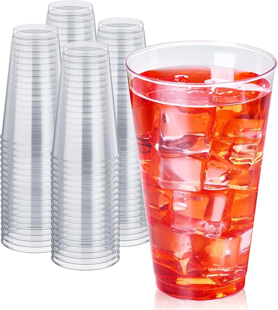 FOCUSLINE 200 Pack 16 oz Clear Plastic Cups, Large Disposable Cups Plastic Party Cup, 16 Ounce Heavy duty Clear Hard Plastic Cups for Party, Wedding, Thanksgiving, Halloween, Christmas