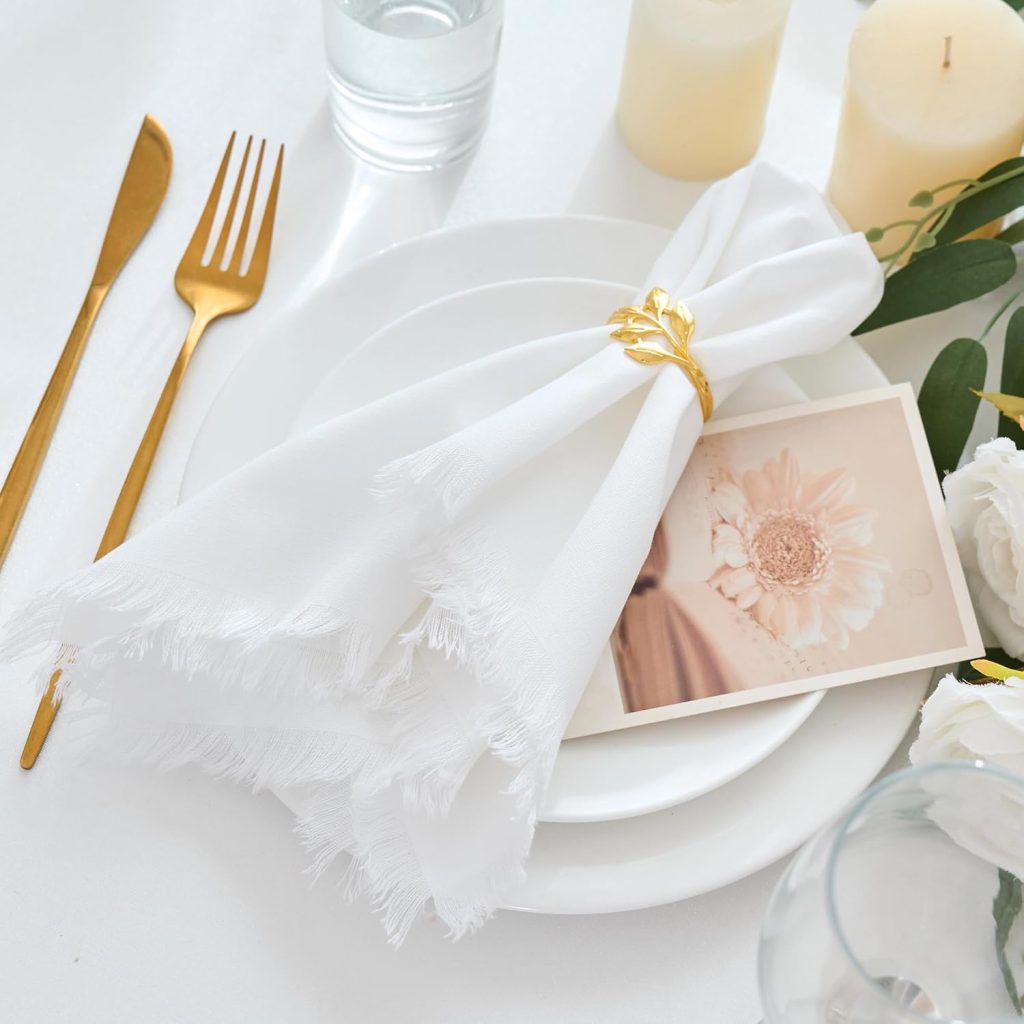 Handmade Cotton Linen Napkins Cloth with Fringes Set of 6 17″x17″ White Boho Dinner Table Napkins Bulk for Christmas Thanksgiving Wedding Party Decoration