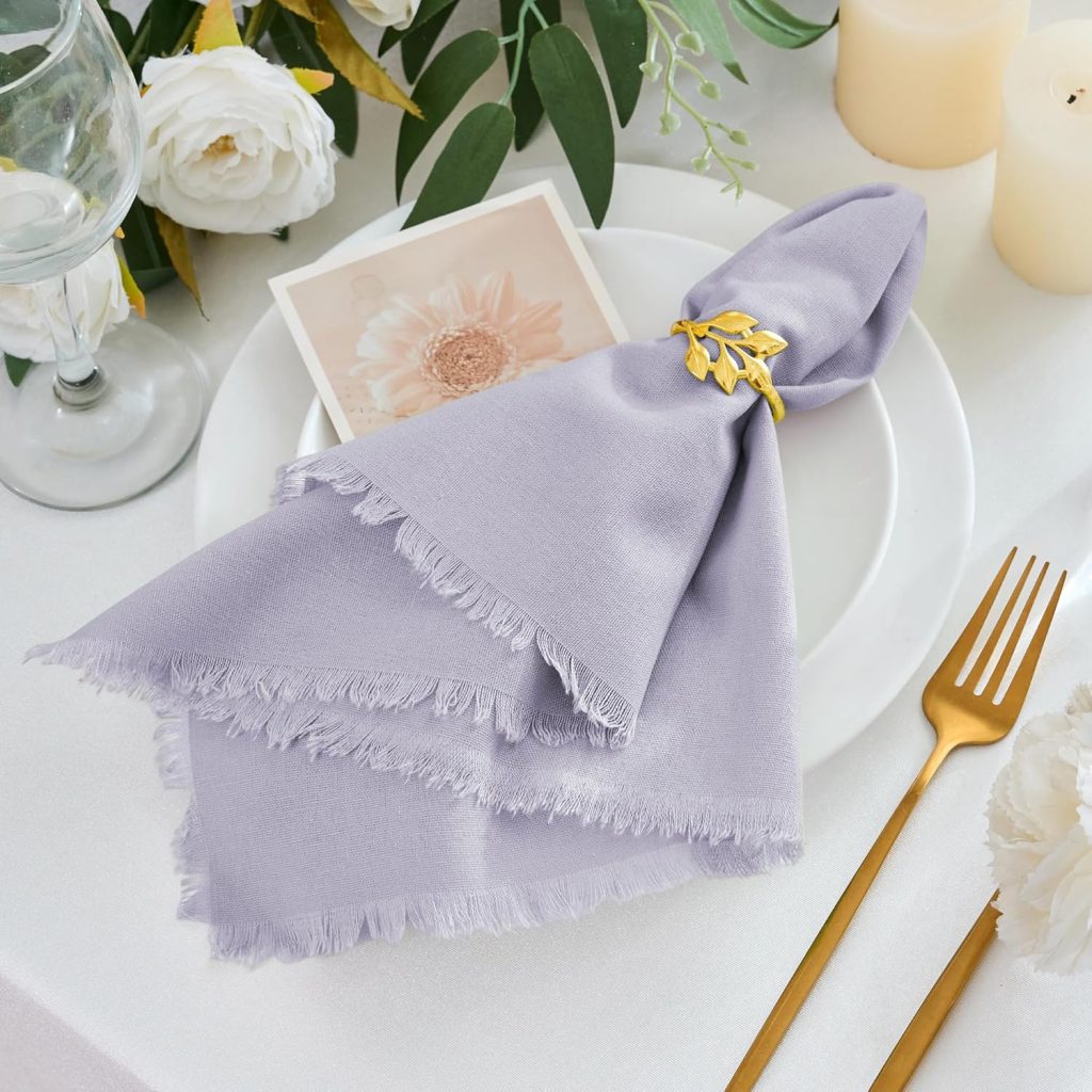 Handmade Cotton Linen Napkins Cloth with Fringes Set of 4 17″x17″ Lavender Boho Dinner Table Napkins Bulk for Christmas Thanksgiving Wedding Party Decoration