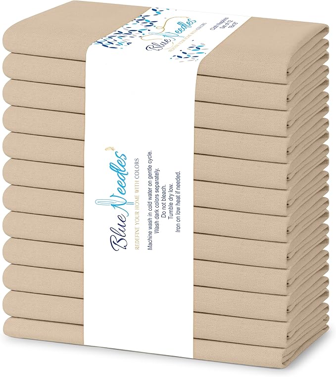 Cloth Napkins – 100% Cotton Set of 12 Dinner Napkins 18×18 inches – Soft, Reusable and Washable Linen Napkins, Ideal for Events, Parties & Everyday Use – Blush Pink