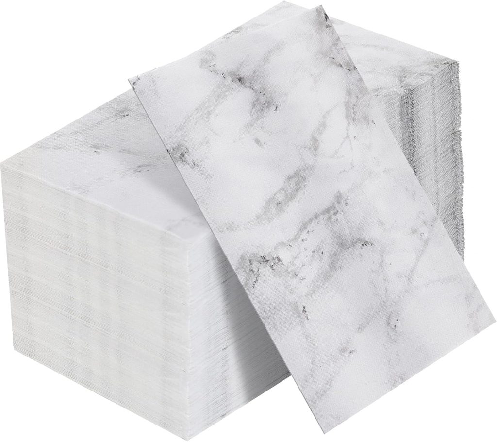 150 Pieces Paper Hand Towels for Bathroom Disposable Guest Decorative Napkins Paper Dinner Napkins Marble Paper Napkins Decorative Bathroom Paper Towels for Home Bathroom Party Supplies (White)