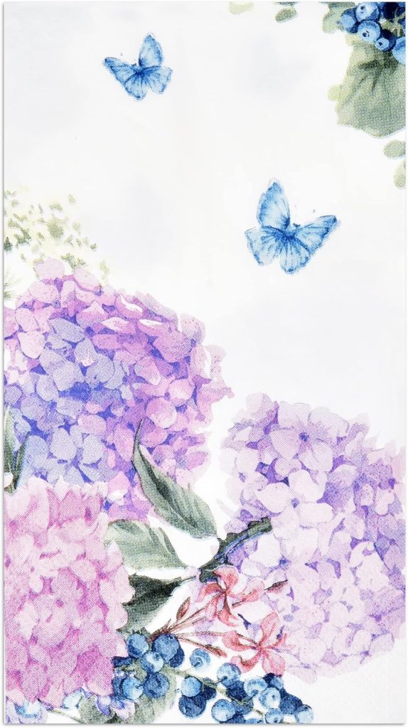 100 Hydrangea Flowers Guest Napkins Easter Floral Disposable Paper Dinner Napkin Decorative Purple Pink Blue Flower for Wedding Bathroom Bridal Shower Party Butterfly Summer Spring Hand Towel