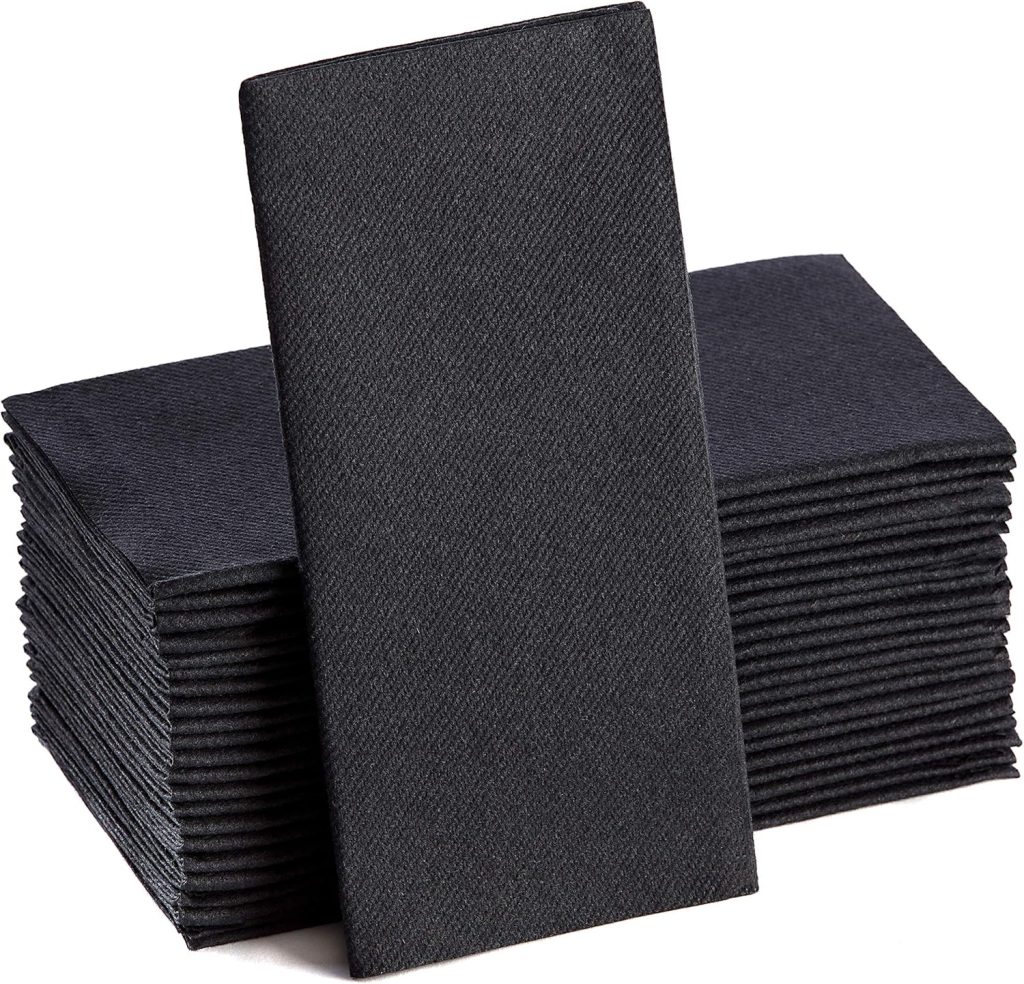Black Paper Napkins | Linen Feel Guest Disposable Cloth Like Dinner Napkins | Hand Towels | Soft, Absorbent, Paper Hand Napkins for Kitchen, Bathroom, Parties, Weddings, Dinners Or Events | 50 Pack