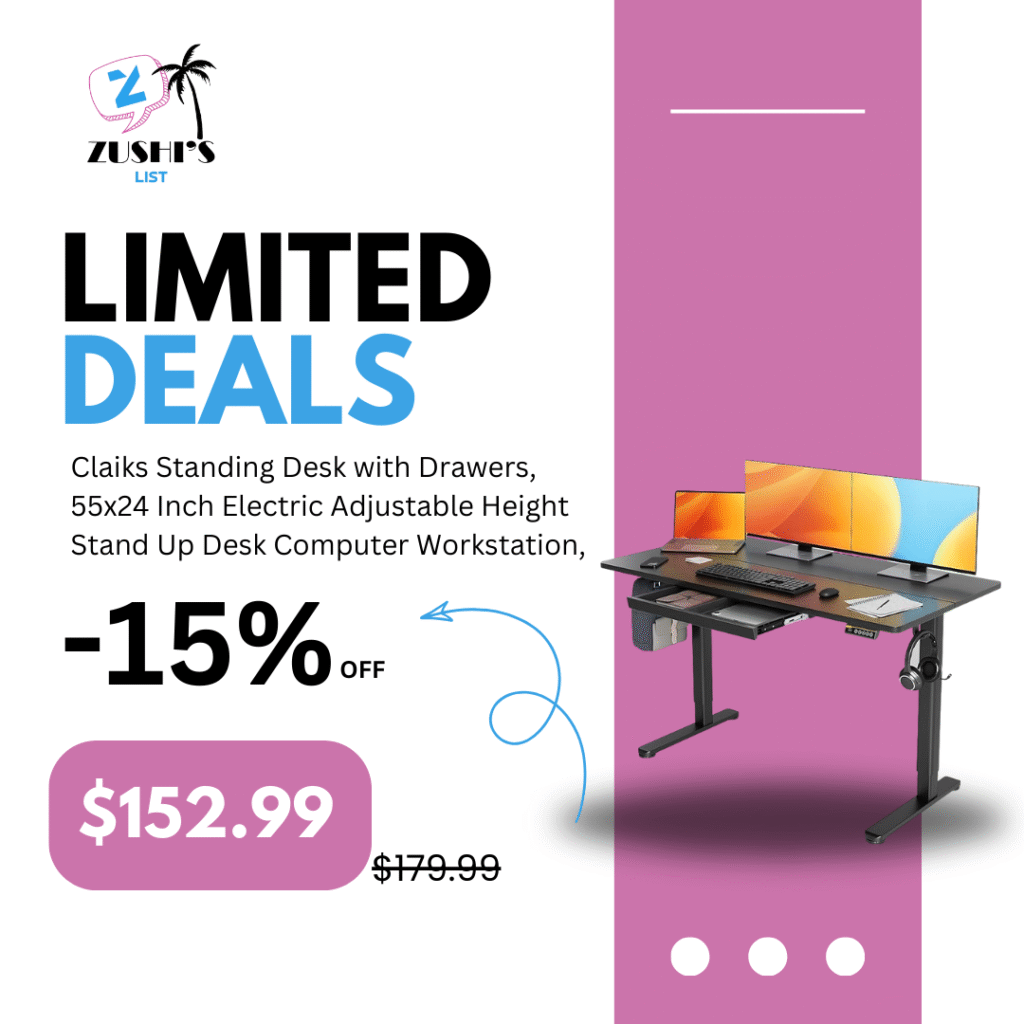 Claiks Standing Desk with Drawers, 55×24 Inch Electric Adjustable Height Stand Up Desk Computer Workstation, Black