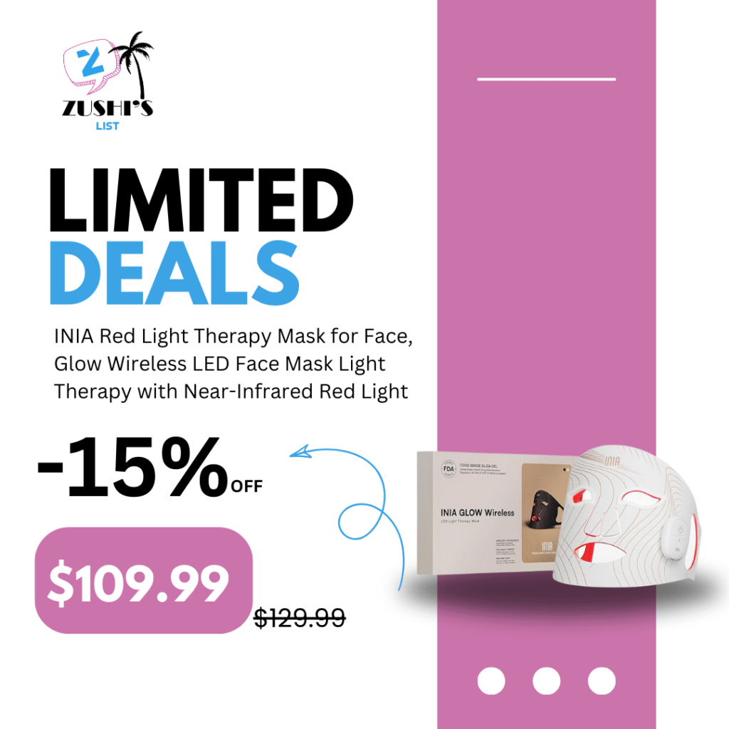INIA Red Light Therapy Mask for Face, Glow Wireless LED Face Mask Light Therapy with Near-Infrared Red Light (NIR), Rechargeable and Ergonomic Design for Home & Travel