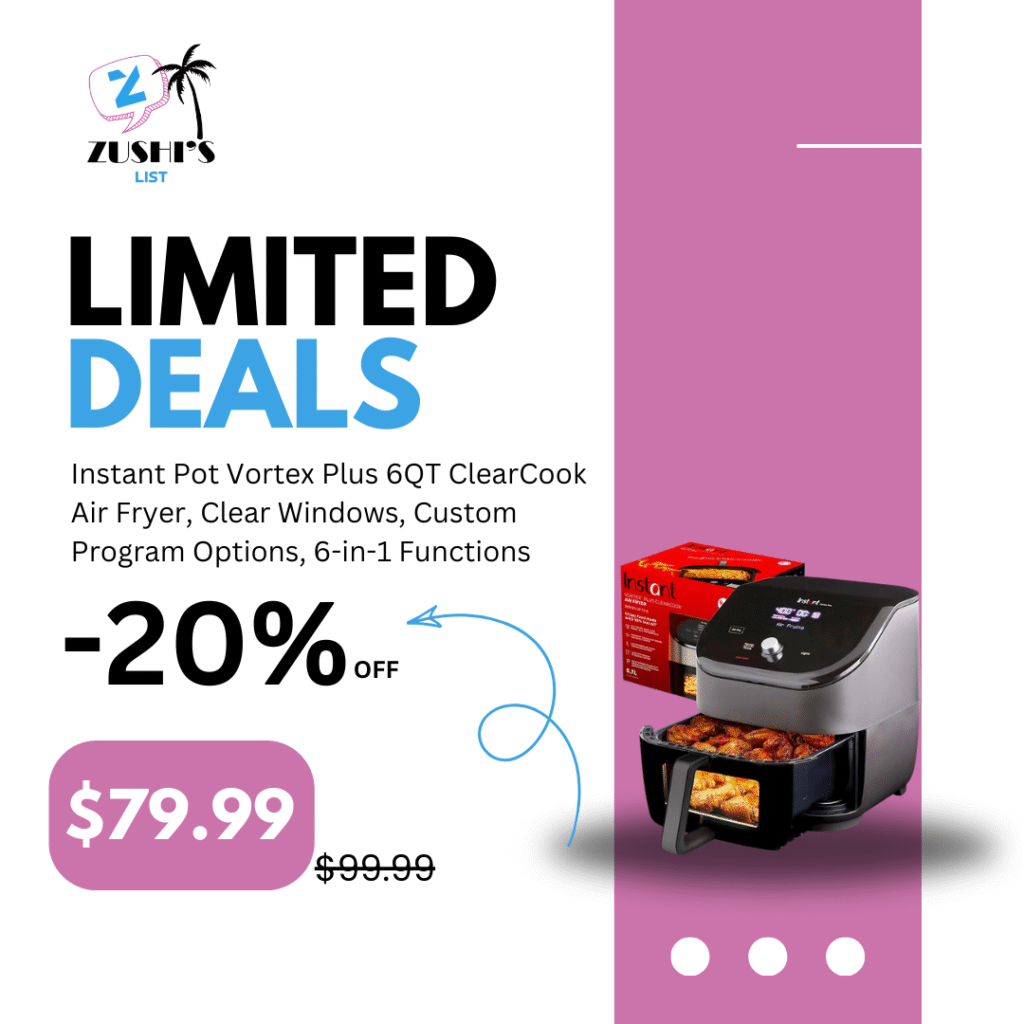 Instant Pot Vortex Plus 6QT ClearCook Air Fryer, Clear Windows, Custom Program Options, 6-in-1 Functions, Crisps, Broils, Roasts, Dehydrates, Bakes, Reheats, from the Makers of Instant Pot, Black