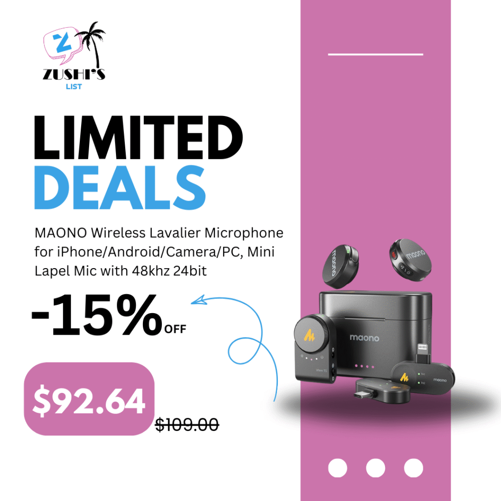 MAONO Wireless Lavalier Microphone for iPhone/Android/Camera/PC, Mini Lapel Mic with 48khz 24bit, Voice Filter, Noise Cancellation, 30h Battery, USB-C/Lightning Plug for Video Recording – Wave T5