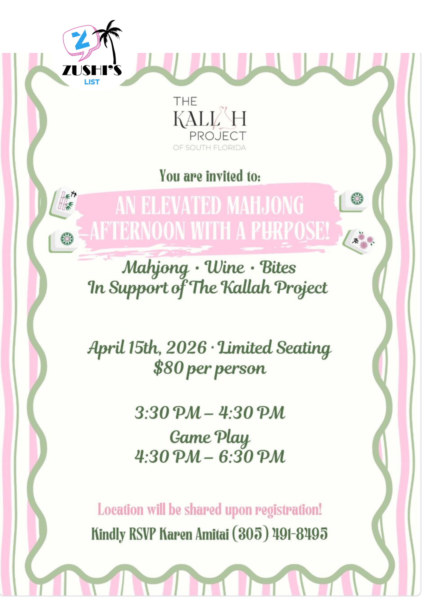 Kindly RSVP Karen Amitai (305) 491-8495