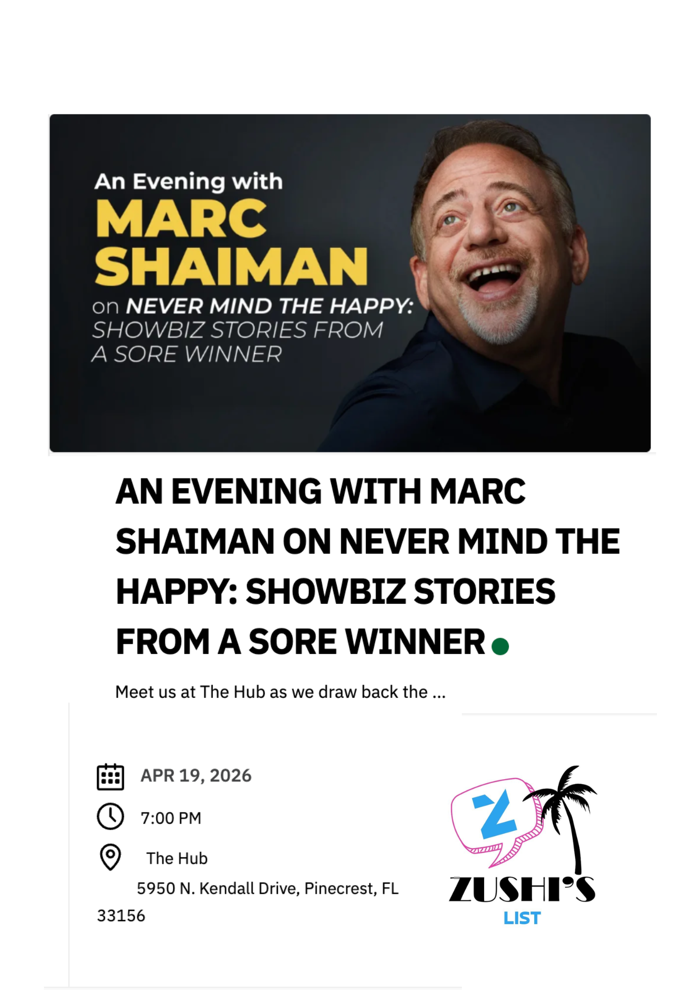 An Evening with MARC SHAIMAN on NEVER MIND THE HAPPY: SHOWBIZ STORIES FROM A SORE WINNER