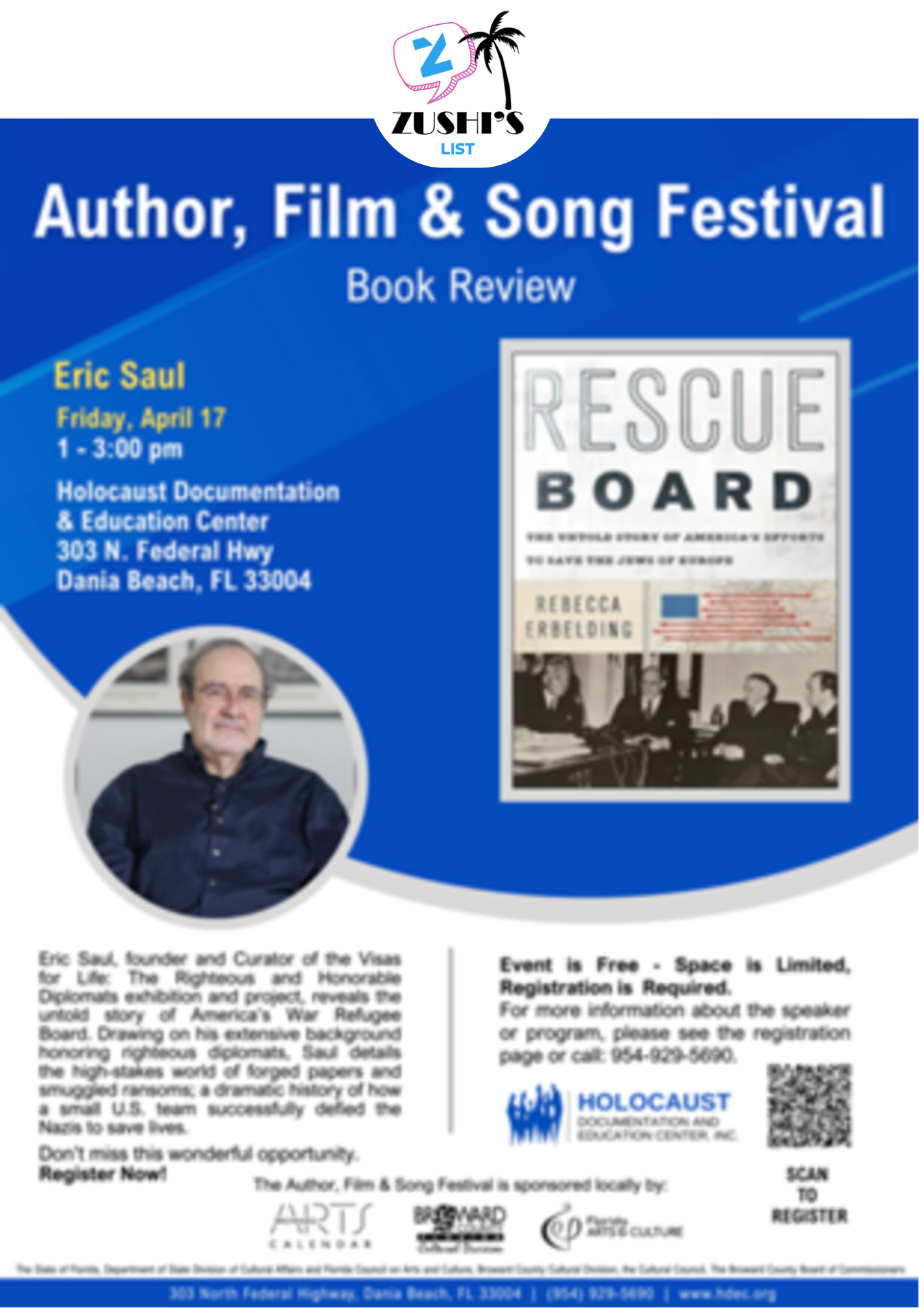 For more information about the speaker or program, please see the registration page or call: 954-829-5600.