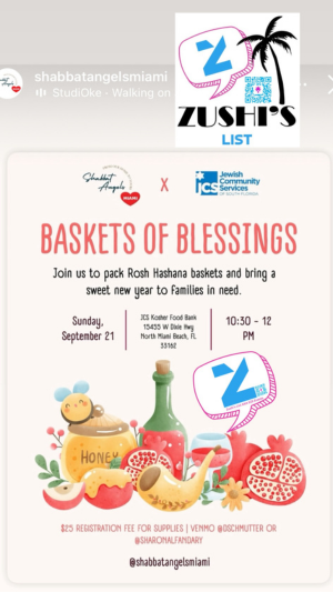 Help spread sweetness this Rosh Hashanah by joining Shabbat Angels Miami and JCS Kosher Food Bank in packing baskets of blessings for families in need. Volunteers will gather to prepare and deliver holiday essentials that bring hope, comfort, and joy to the community as the Jewish New Year begins. Your $25 registration fee supports supplies and ensures every basket makes a difference.