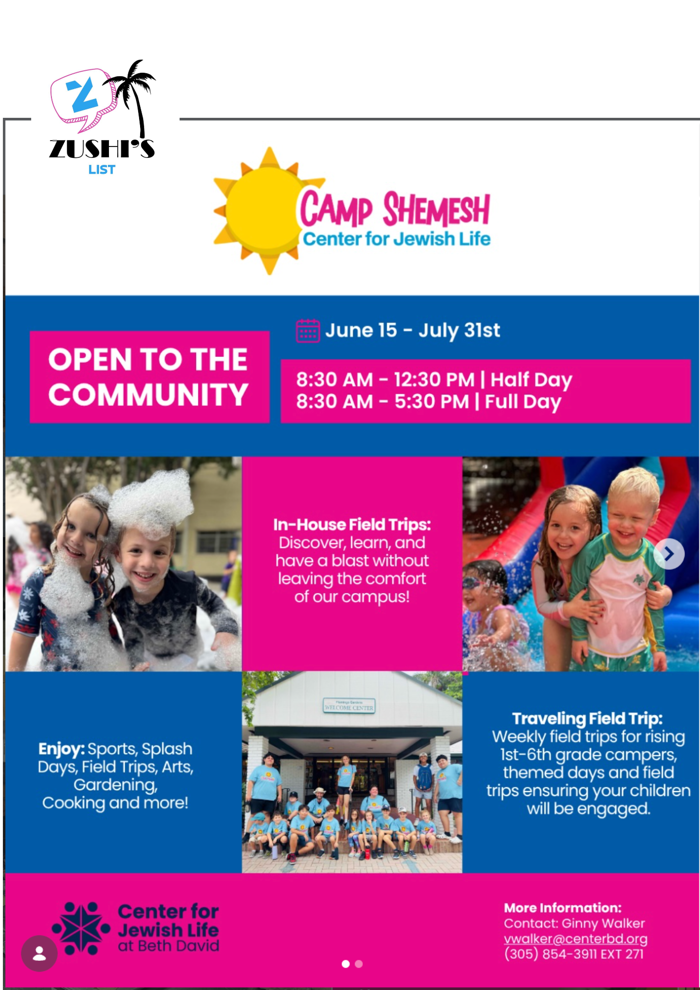 Enjoy: Sports, Splash Days, Field Trips, Arts, Gardening, Cooking and more!