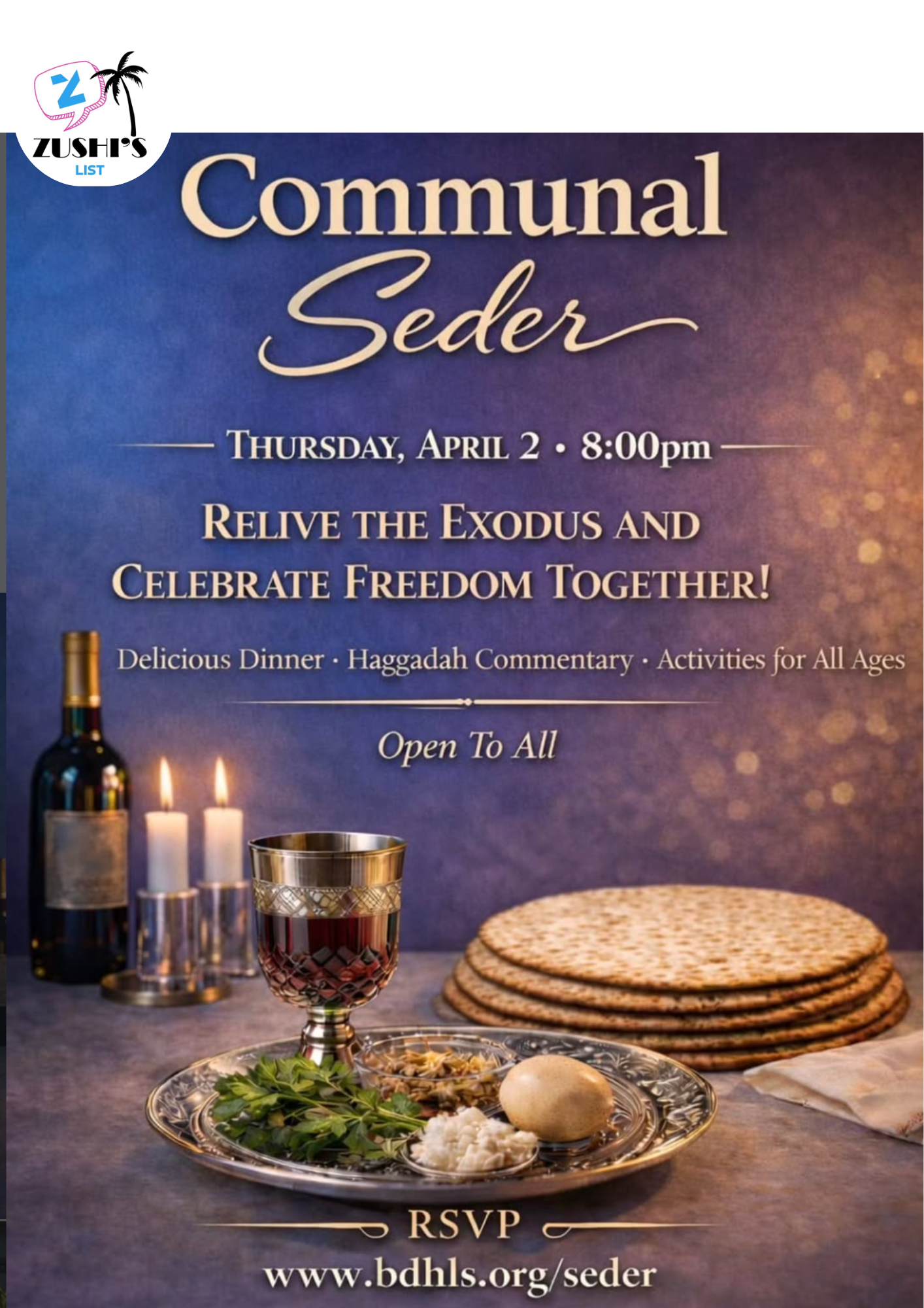 – 2nd Seder, Thursday April 2, 8:00 PM