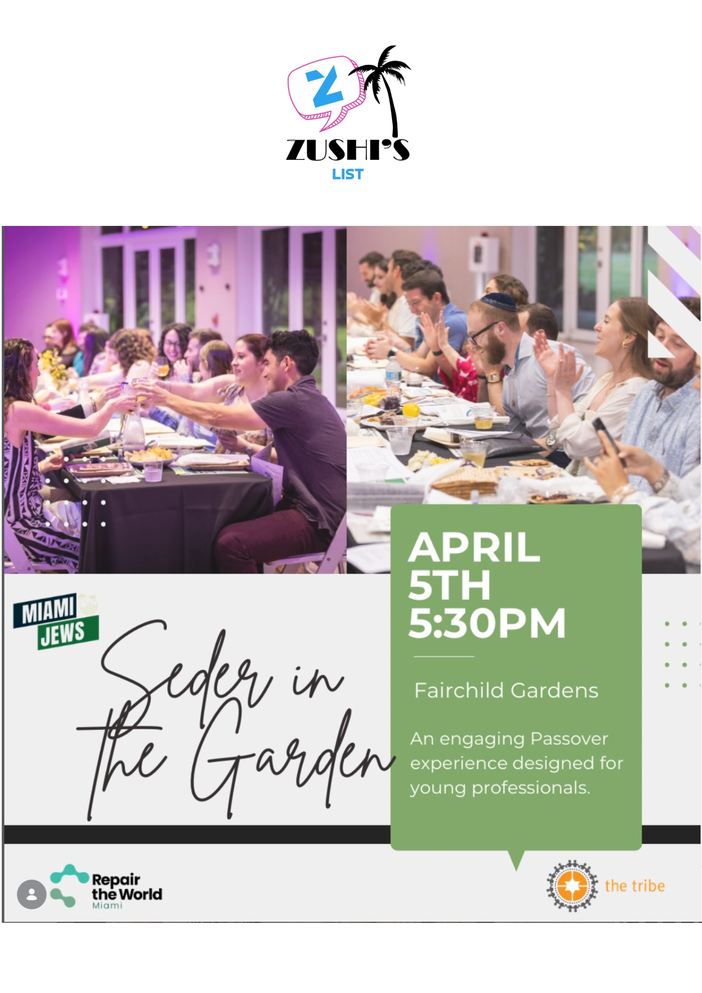- 8:15pm Seder Begins