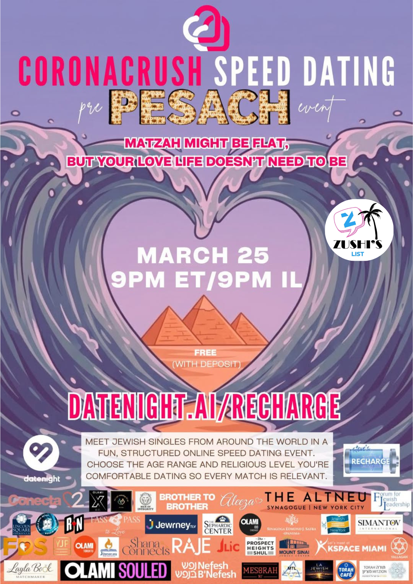 CORONACRUSH SPEED DATING PRE PESACH EVENT