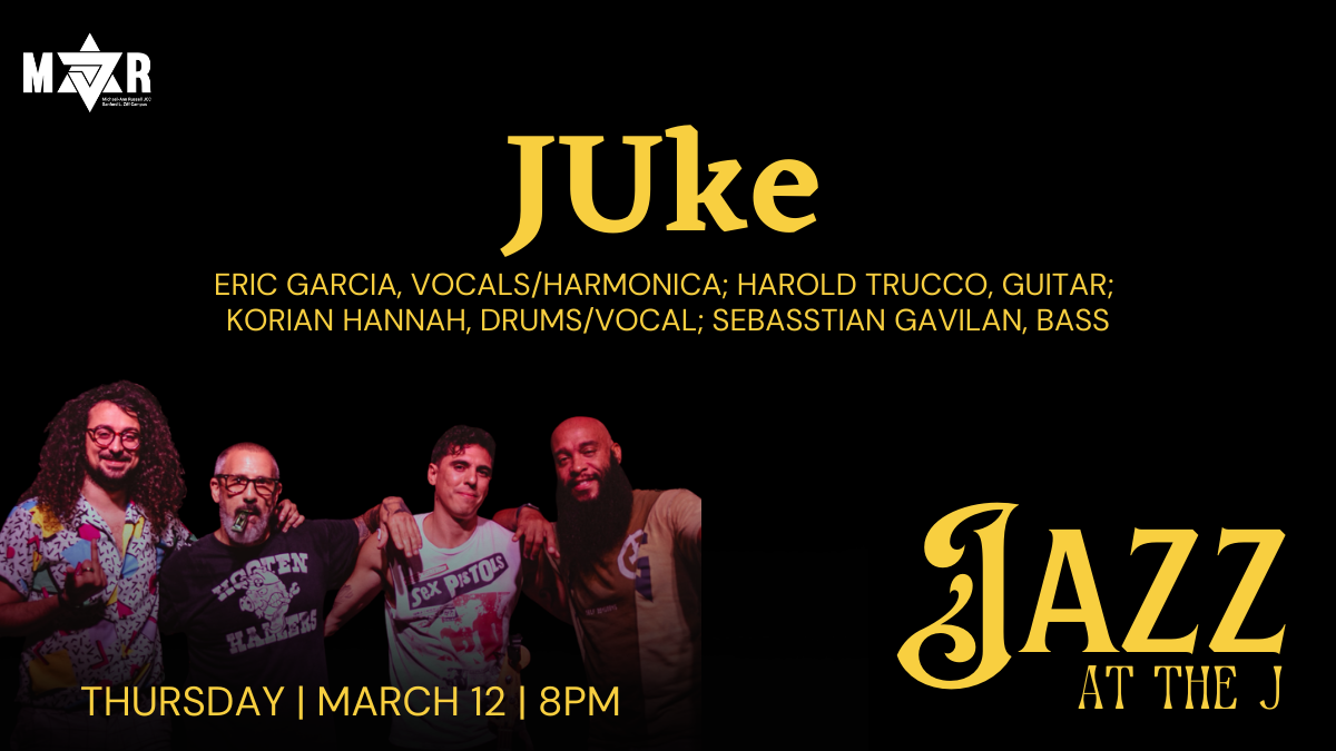 JUke is a high-energy blues band led by harmonica powerhouse Eric Garcia, igniting stages with gritty soul and soaring solos. A South Florida blues staple since the Tobacco Road days, JUke has shared the stage with G. Love, Zach Deputy, and Gary Clark Jr., and has played major festivals.