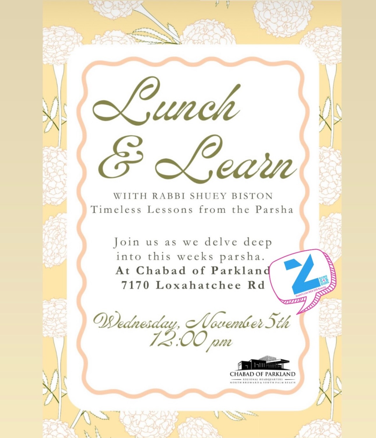 Dive into timeless Torah wisdom over lunch with Rabbi Shuey Biston.