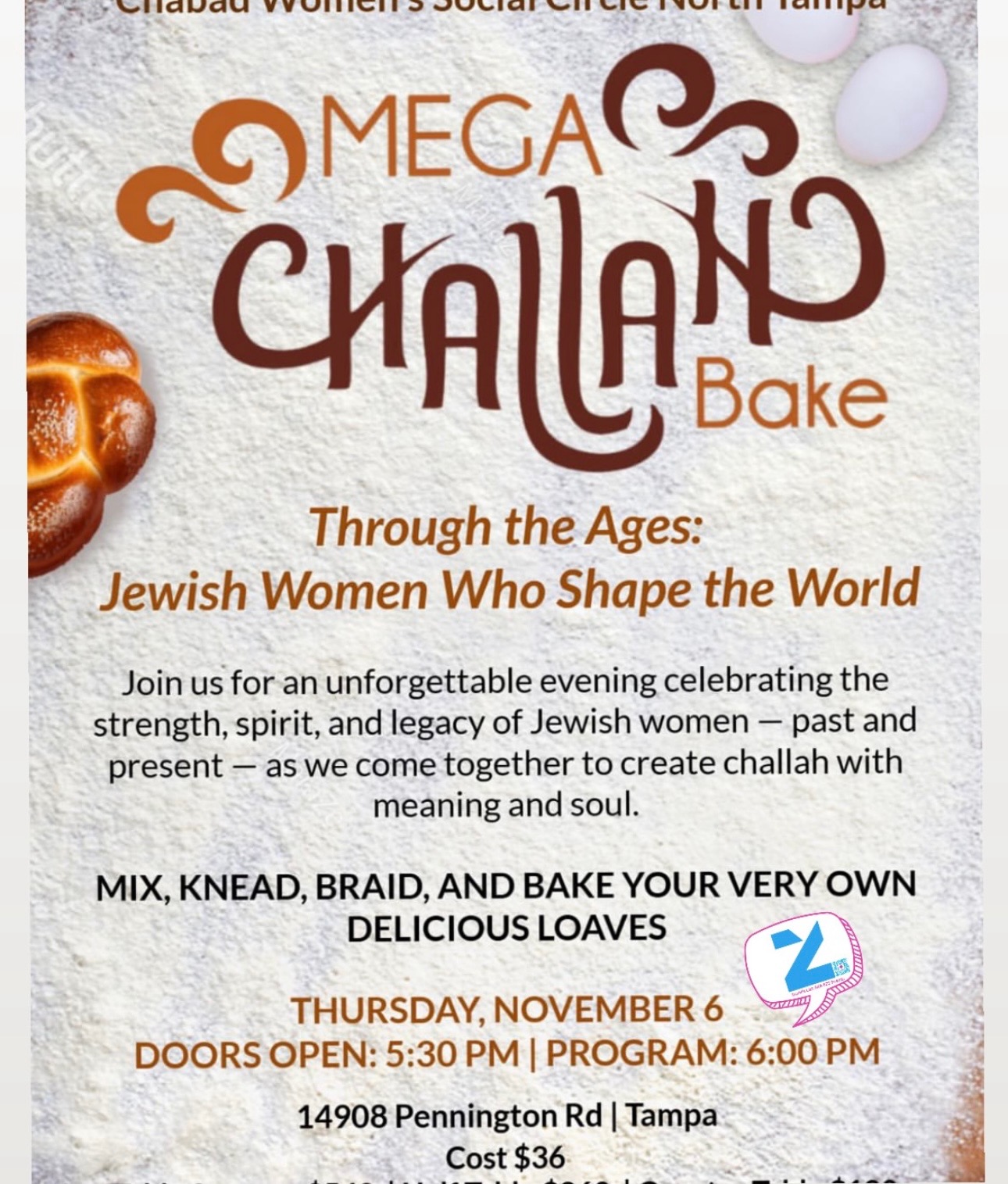 Join for a powerful and uplifting evening celebrating the strength, spirit, and legacy of Jewish women — past and present — while creating delicious homemade challah with meaning and soul.