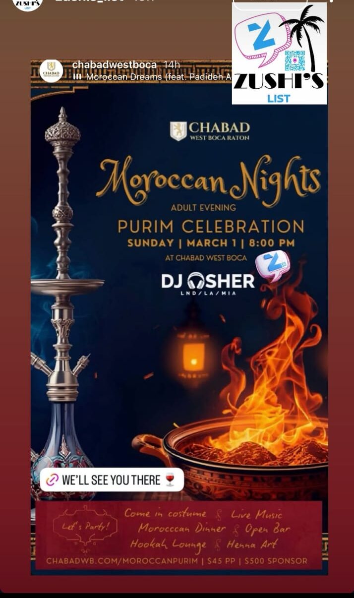 CHABADWB.COM/MOROCCANPURIM | S45 PP | $500 SPONSOR