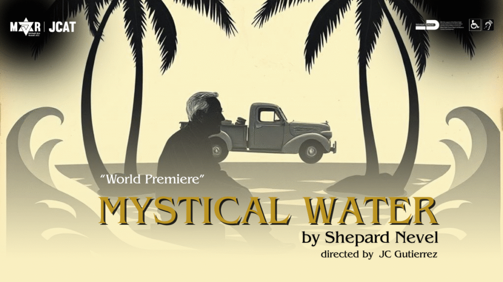 MARJCC JCAT proudly presents “Mystical Water “. By: Shepard Nevel, Directed by: JC Gutierrez. In 1950s Cuba, a truck driver’s life shatters after a mysterious accident, leaving him struggling with a fractured mind and a profound connection to something unseen.  Against the backdrop of a country on the verge of upheaval, the accident brings to the surface political and social conflicts between  friends, co-workers and community. Thoughtful, poignant, and unexpectedly funny, Mystical Water offers a vivid portrait of a working-class family navigating a deeply personal challenge in a very public setting.