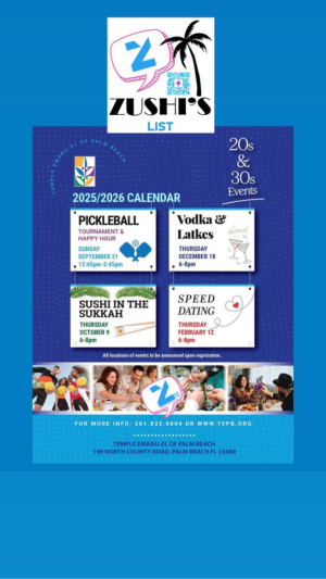 - 🤝 Presented by: Temple Emanu-El of Palm Beach (20s & 30s) x Zushi’s List AKA EZS Events
