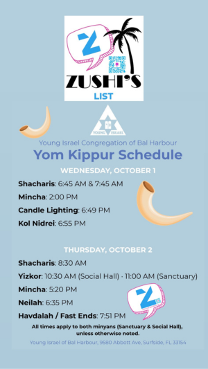 Yom Kippur Schedule – Young Israel Congregation of Bal Harbour