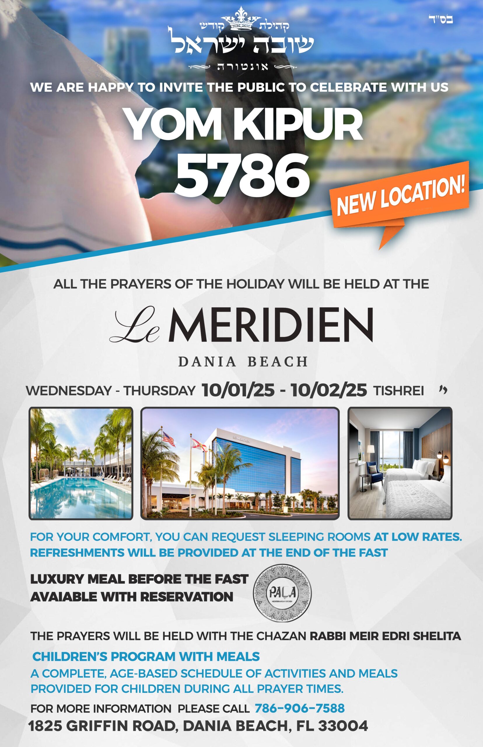 *Shuva Israel Aventura warmly invites you to a unique Yom Kippur experience at a luxurious hotel!*🌟