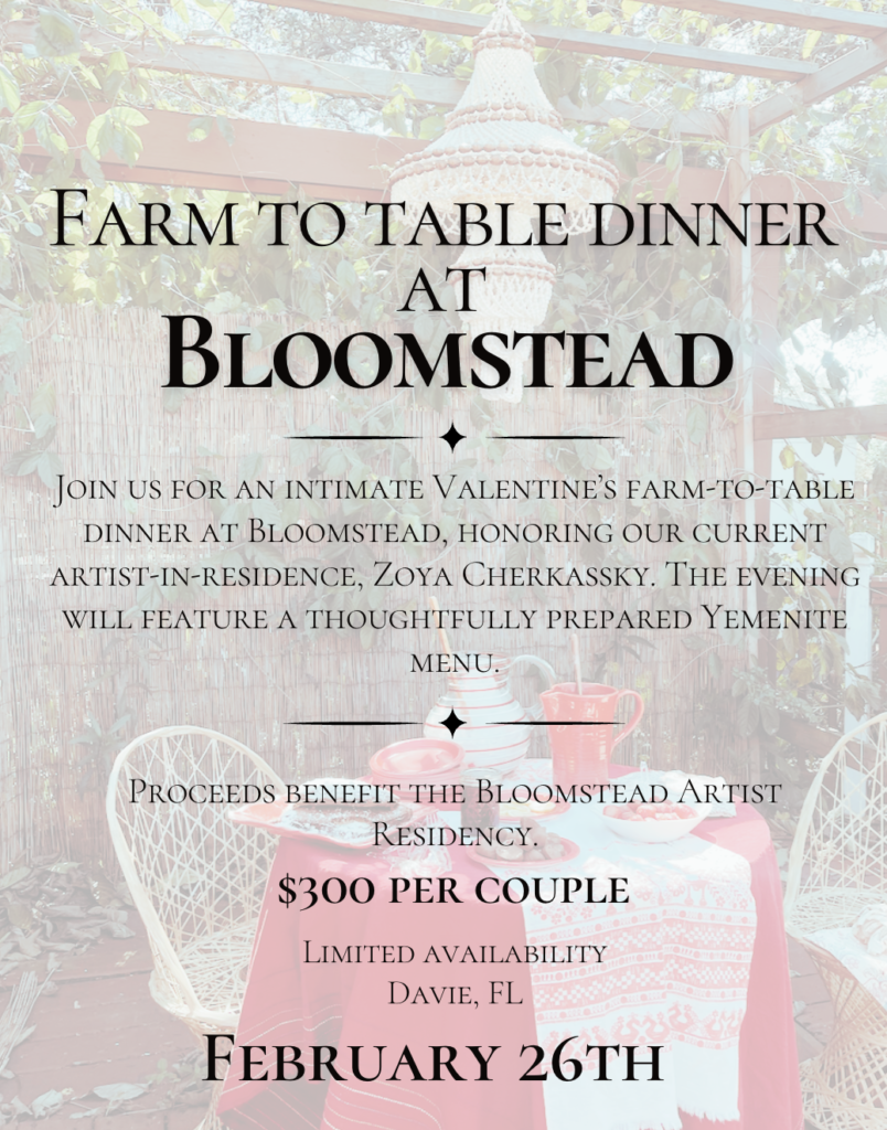 Join us for an intimate Valentine’s farm-to-table dinner at Bloomstead, honoring our current artist-in-residence, Zoya Cherkassky. The evening will feature a thoughtfully prepared seasonal menu, shared on the land, celebrating […]