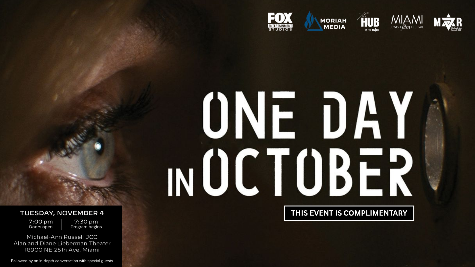 Alan & Diane Lieberman Theater 18798 NE 25th Pl, Ojus, FL, United StatesThe Simon Wiesenthal Center invites you to an exclusive screening of the episode “One Day in October”, part of a […]