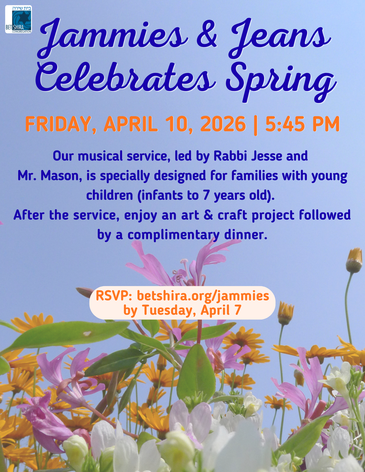 Bet Shira Congregation 7500 SW 120 Street, Miami, FL, United StatesJoin us for Jammies & Jeans as we celebrate spring together! Our monthly musical Shabbat experience is created especially for […]