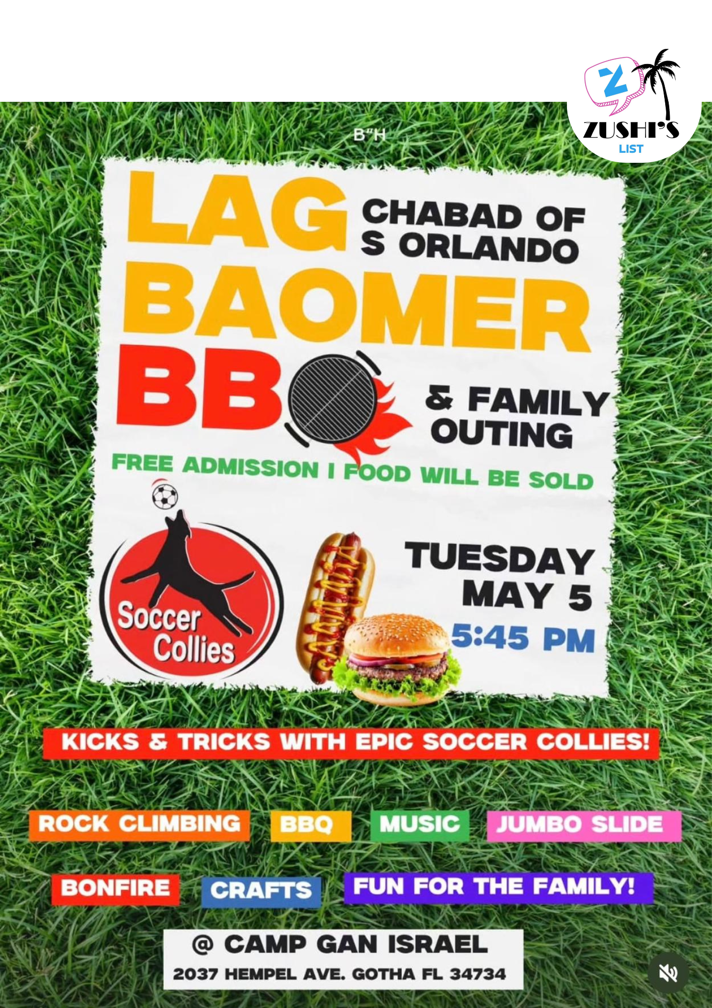CAMP GAN ISRAEL 2037 HEMPEL AVE. GOTHA FL 34734, United StatesLAGS BAOMER BBQ & FAMILY OUTING FREE ADMISSION | FOOD WILL BE SOLD TUESDAY MAY 5 5:45 PM KICKS & […]