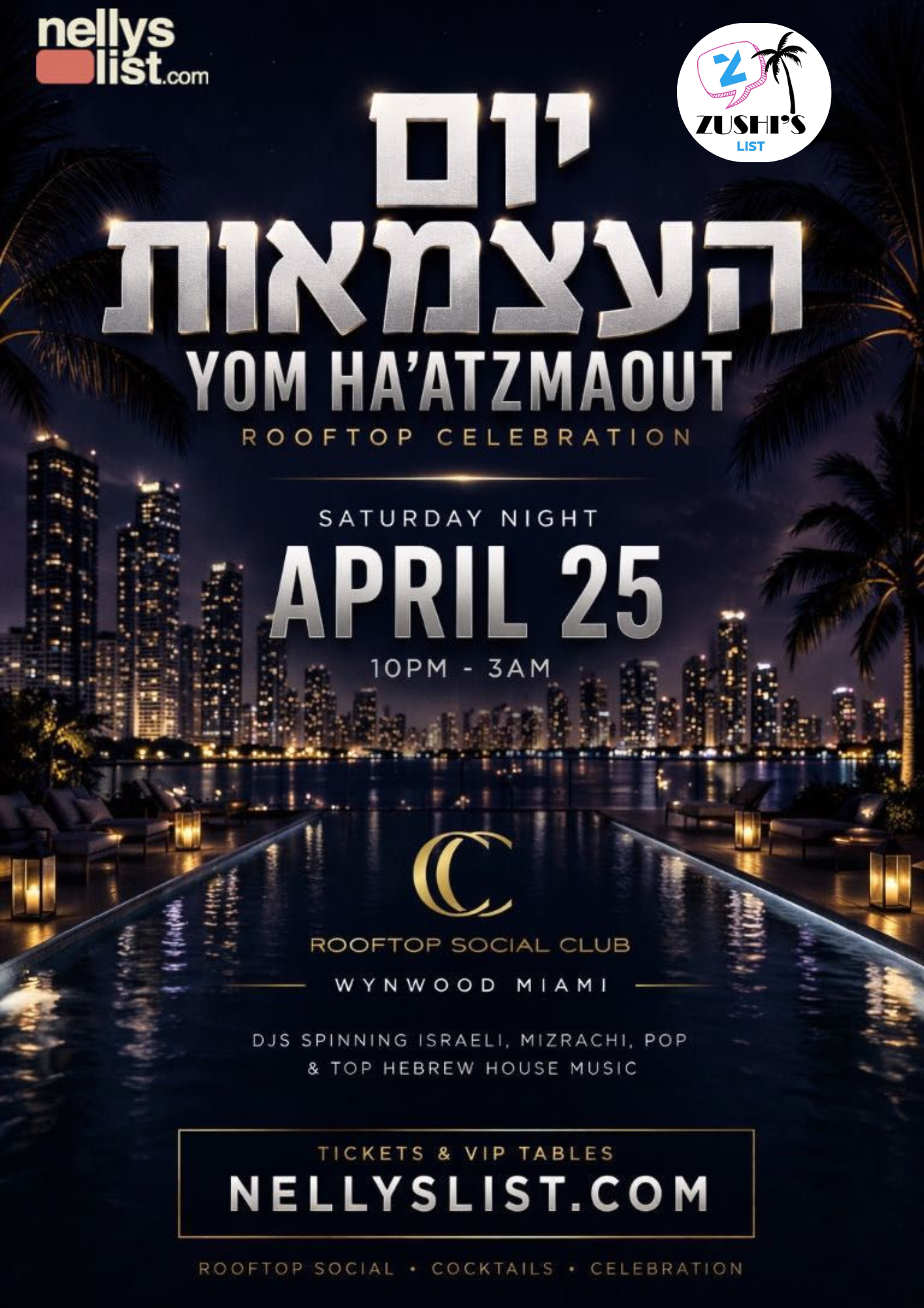 CC Rooftop Wynwood Miami, United StatesThis Saturday Night April 25 Rooftop Israel Independence Party Tel Aviv vibes. Zionist pride. Am Israel Chai. DJs spinning Israeli […]
