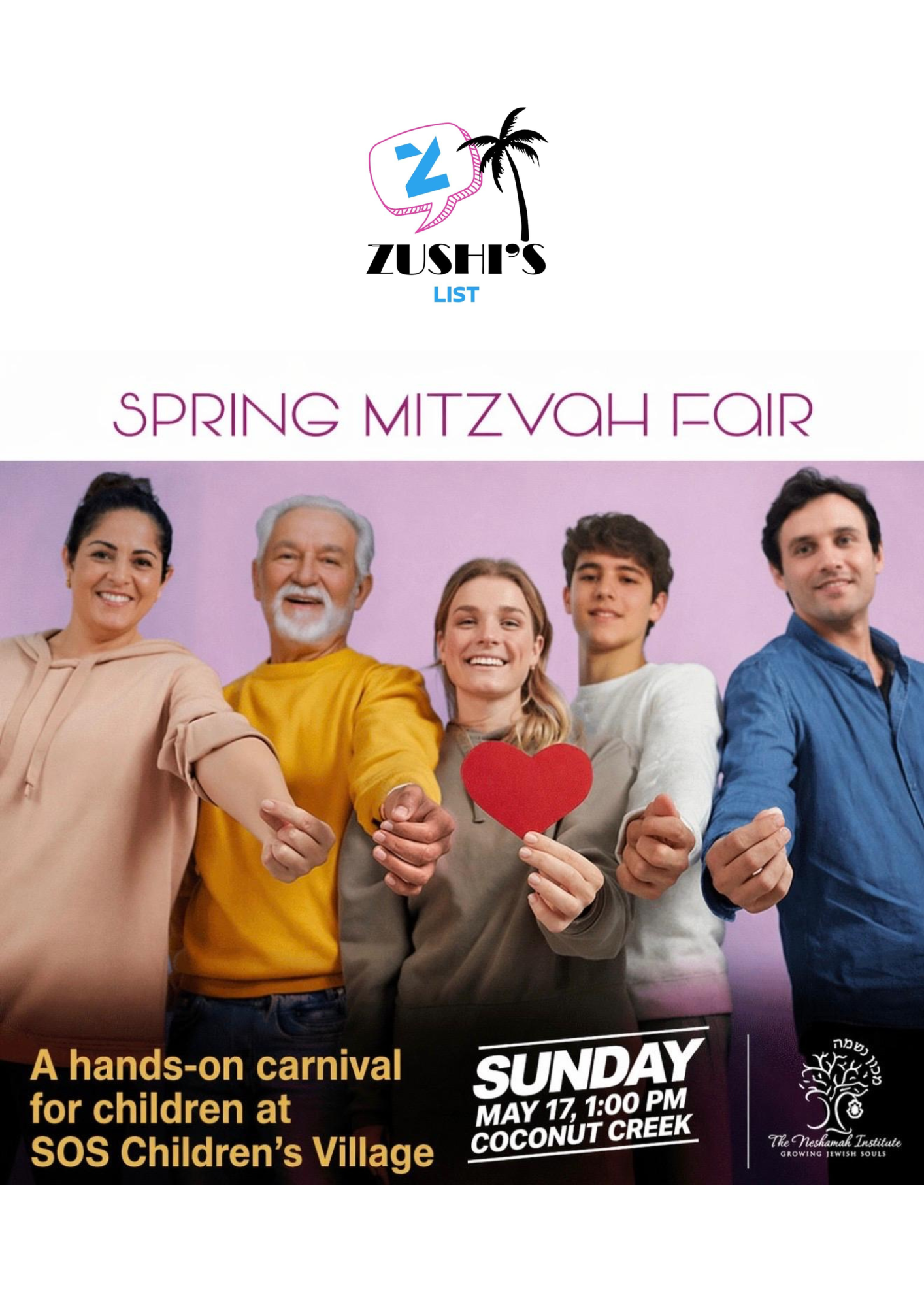 SPRING MITZVAH FAIR A hands-on carnival for children at SOS Children's Village SUNDAY, MAY 17,1:00 PM COCONUT CREEK