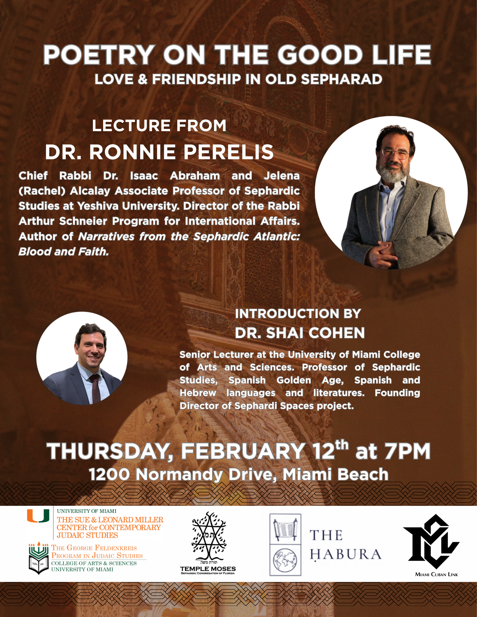 Temple Moses 1200 NORMANDY DR, Miami Beach, FLLecture from Dr. Ronnie Perelis about poetry of Old Sepharad.